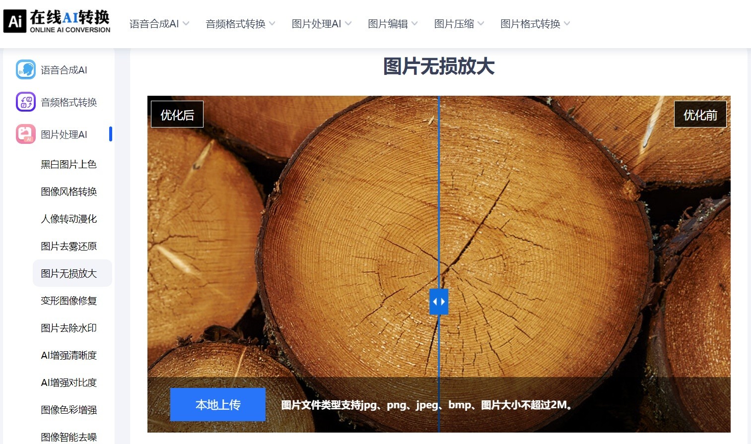 步骤2、添加好图片后进行无损放大设置:先选择一种图片无损放大算法。然后设置放大后图片降噪程序,注意:因为这里是智能方式完成图片无损放大的操作,所以不需要您进行过多得设置。确认好之后,点击下方“开始处理”的蓝色按键,网页便开始帮助我们对图片无损放大,我们只需要等待处理完成即可,图片越多处理时间就越久。